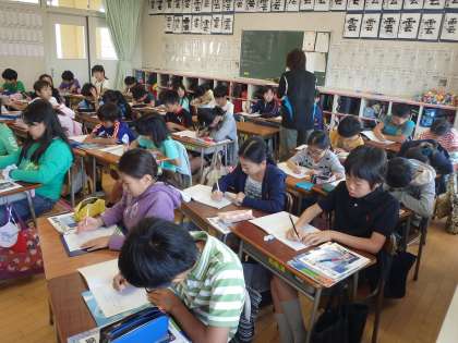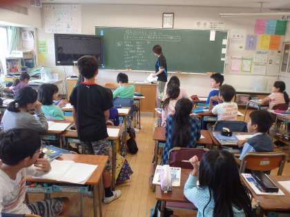今日の授業は「住みよいくらし〜水〜」でした。子どもたちは、まず1日のくらしの中で水がどんなことに使われているかを発表していきました。子どもたちからは、風呂、トイレ、料理、洗たく、飲み水、洗顔、洗車、食器洗い、歯みがき、くつ洗い、花のみずやり、シャワー、掃除、水そう、習字、手洗い、うがい、炊飯、スチームアイロンなど発表され、水がたくさんのこと使われているのに気付いていました。