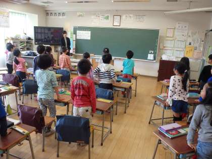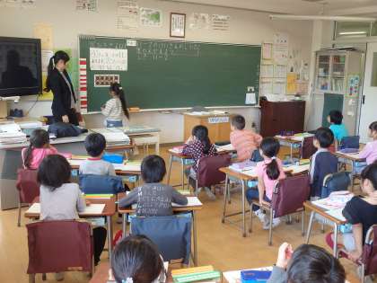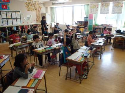 2年次研修2回目の授業は、算数のひきざん(2)でした。先生は、50型テレビと実物投映機を使って、授業を進めていました。教育センター指導力サポート室の先生には、授業の進め方についてはご指導を受けましたが、学級経営がしっかりできていると、おほめのの言葉をいただきました。