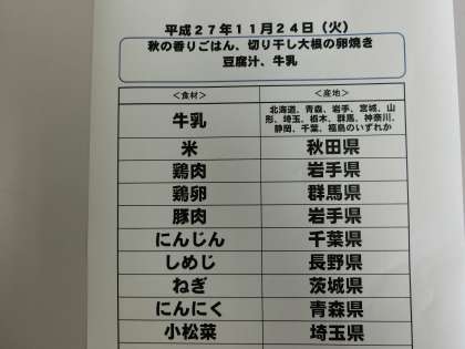 11月24日(火)の給食食材産地について