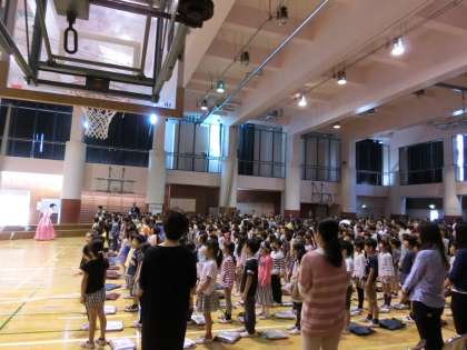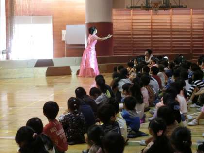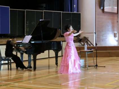 コンサートの最後は、会場にいる子どもたち、先生、保護者のみなさん全員で「まっ赤な秋」を歌いました。体育館にすてきな歌声が響きわたりました。