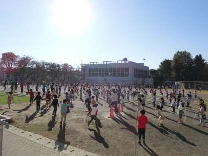 金曜日の朝は、わくわくスポーツタイムです。6日から12月1日までを「なわとび月間」として取り組みます。そのため、今回のわくスポは、運動委員会の5・6年生が列の前に並び、とび方を披露しました。その後、リズムなわとびをしたり、各自の練習をしたりしました。