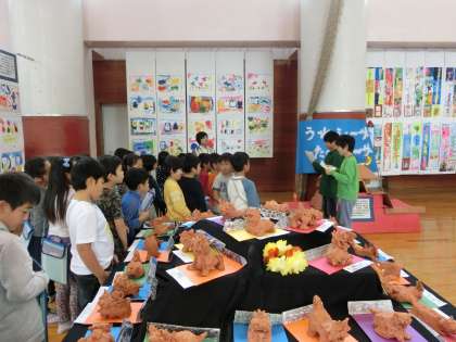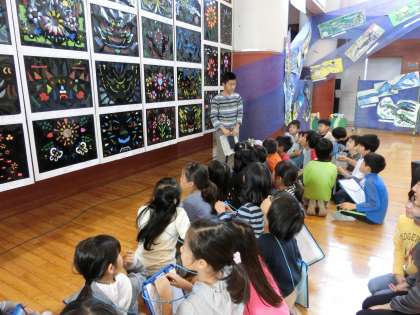 6年3組は、3年生と4年2組を対象にガイドをしました。ですが、対象は子どもたちだけではありません。6年生の保護者のみなさまにもご協力いただきました。保護者の鑑賞時間は午後に設けられていますが、特別にガイドの時間だけ来ていただきました。おうちの方の前では照れもあったようですが、最後までしっかり伝えることができました。