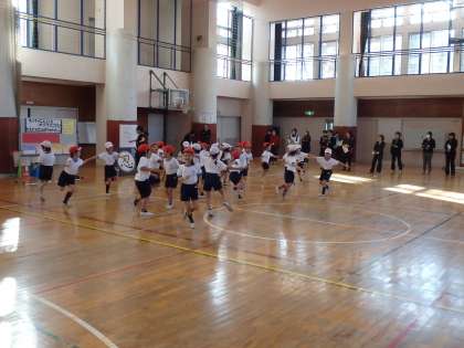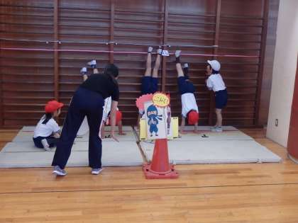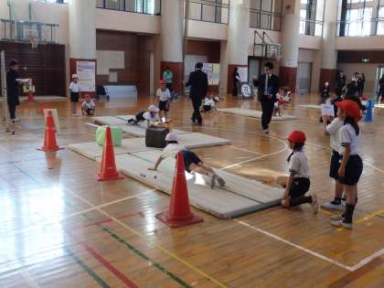 今年度6回目になる体育科校内研究授業が行われました。研究主題は「運動に親しみ、意欲的に実践する力を身に付ける体育学習」〜自己肯定感が高まる助言、評価を通して〜ですが、今日は、器械・器具を使っての運動遊び「マットを使った運動遊び」でしたが、スーパーにんじゃをめざすでござる!にんにんにんぽうマットのじゅつと名付けて行われました。どの子も、忍者になり切って運動していました。講師の先生から、提案性のある今までで一番よい研究授業でしたというおほめの言葉をいただきました。