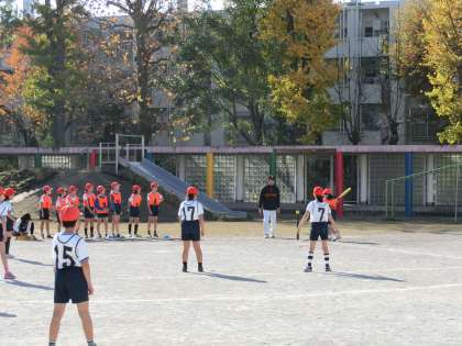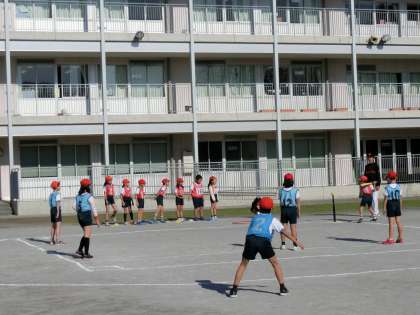 コーチからは「4年生はよく打ちますね。」とおほめの言葉をいただきました。守備は内野が女子のときは外野が男子、またはその逆にして進めてきました。あっという間に時間がきてしまい、子どもたちからは「楽しかった。」「またやりたい。」の声がたくさんありました。写真は、4年2組の様子です。