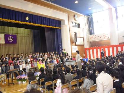 桜咲く4月6日、91名の新一年生が期待と喜びで、小さな胸をいっぱいにふくらませ、入学しました。2年生の歓迎演奏に子どもたちもひきこまれていました。