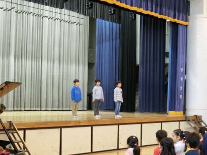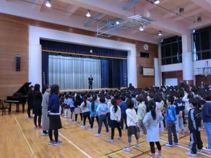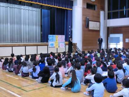 25日(金)で2学期が終わりました。朝、体育館で終業式が行われました。校長先生からは、「年末・年始にしかできない日本独特の行事を体験しましょう。」「お手伝いをすすんでしましょう。」「命を大切にしましょう。」とお話がありました。児童代表の言葉は2年生でした。原稿を暗記し、しかもマイクなしでの発表に会場から大きな拍手がわき起こりました。式の後は、生活指導担当の先生から冬休みの諸注意がありました。今回のテーマは「おみやげ」でした。