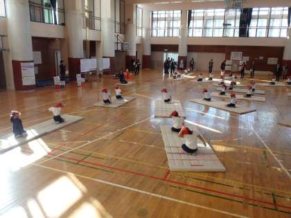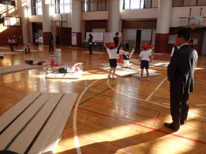 今年度7回目最後の研究授業。単元名は、器械・器具を使っての運動遊び「マットを使った運動遊び」〜赤小オリンピック マットメダルをあつめよう〜でした。講師の先生からは、しっかりしたマネジメントが光っていた、最後の集合時「えーっ。」という声が出るぐらいもっとやりたいという子どもの気持ちが表れていた、子どもたちのはっきりした役割分担ができていた授業でしたという講評をいただきました。本当に子どもたちのやる気が前面に出ていました。1・2年生のマット遊びが中学年・高学年にしっかりつながるようにしていきたいと思います。