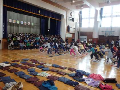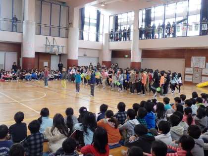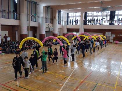 3・4校時に体育館で行われました。司会は4・5年代表委員。2〜5年の各学級代表が花のアーチで、出迎えました。6年生は1年生と仲良く手をつないで入場しましたが、どの6年生も恥ずかしそうな・うれしそうな顔が印象的でした。