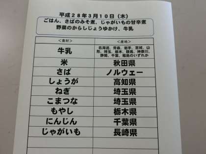 3月10日(木)の給食食材産地について