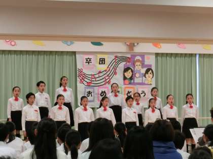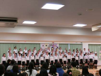 学校は26日(土)から春季休業に入りました。その初日、多目的室で合唱団の子どもたちによる「スプリングコンサート」が開催されました。3年生13名、4年生14名、5年生13名、6年生20名が参加しました。写真は、オープニング曲「ゆかいに歩けば」、3年生による「ゆかいな木きん」、4年生による「まきばの朝」です。
