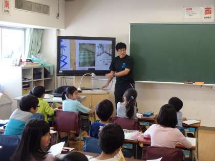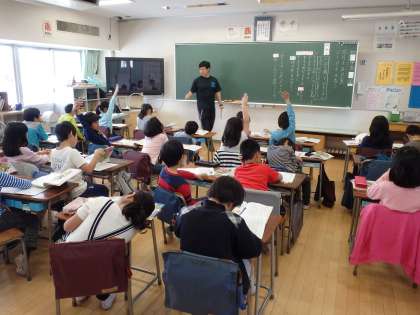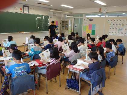 今日の授業は「ピータイルねこ」でした。めあては「お話を聞いて、おもしろいと思ったところを書こう」でした。先生は、初めに大型TVでピータイルを見せるところから入り、子どもからの一言をうまくかわしながら、授業を進めていきました。内容のほかに「先生の読み方がおもしろい」という感想をもった子も多くいました。この感想を子どもたちの朗読の仕方につなげていくことでしょう。
