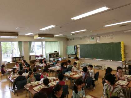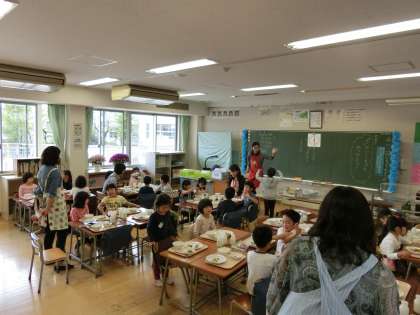 4月19日(火)から22日(金)までの4日間、1年生の給食支援ボランティアとして1年生の保護者の方が参加してくださいました。(総勢57名)自分のことは自分で行うことが原則ですが、配膳の見守りを中心に台ふきんの絞り方などもご指導いただきました。保護者の方からは、「思ったよりも子どもたちが自分たちでやっているので驚きました。」「子どもたちと一緒に食事ができて嬉しかったです。」などの感想が聞かれました。