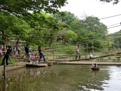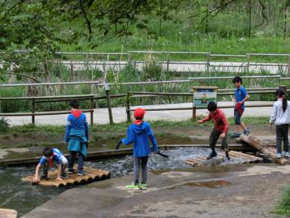 4月27日(水)、4年生が遠足に行きました。行き先は「フィールドアスレチック 横浜・つくし野コース」です。小田急線と田園都市線を利用して行きました。水曜日は会議を行う学校が多いことから、来園者が少ないこの日に出かけました。本校を入れても3校だけでしたので、混雑することなく伸び伸びと遊ぶことができました。午前中は、池のあるエリアが大人気で「池ポチャ」覚悟で遊んでいました。子どもたち同士声を掛け合ったり、手助けをしたりしながら楽しく遊んでいました。少し早目の昼食となりましたが、子どもたちは「もう待ちきれない」といった様子でした。保護者の皆様が作ってくださったお弁当を喜んでいました。早朝よりのお弁当作り、ありがとうございました。