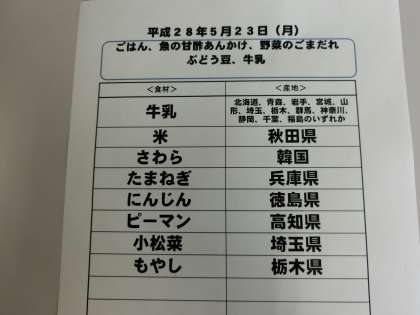 5月23日(月)の給食食材産地について