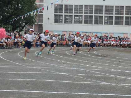 二度目の曲走路。コーナーワークが上手になったような気がしました。来年は、100m走です。距離が20m長くなりますので、ゴール前のスピードが落ちないことが課題になります。