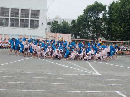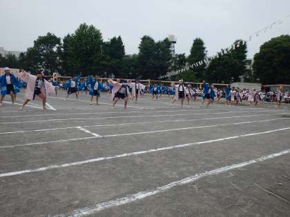 揃いの法被をまとい、どの子も腰の低い姿勢を保ち、切れよく踊り切りました。高学年になり、次期リーダーとして、着実に育っているという感じを受けます。
