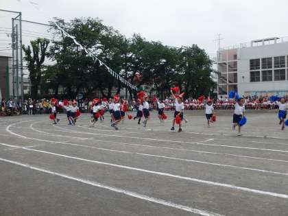 居るだけでかわいらしい1年生が、かわいいとんがり帽子をつけて、かわいい振りでさらにかわいらしく踊りました。小学校初めての運動会でしたが、どの子もしっかり踊ることができました。