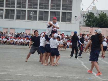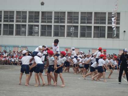 4年生にも手伝ってもらい数をあわせ、男女に分かれて戦いました。作戦だったのでしょうか、走って逃げる騎馬が多く見られました。今年は指導も行き届き、しっかりルールを守って競技ができました。