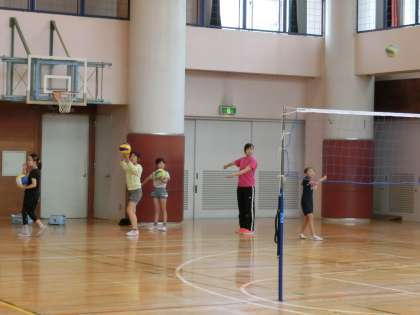 6月1日(水)の朝7時30分よりバレーボール教室の朝練習が始まりました。毎週水曜日に行われます。体育館には、4年生以上の参加希望者が15名集まりました。月1回土曜日の午後に練習していることもあり、自分たちでネット等の準備をしていました。オーバーパス、アンダーパスをそれぞれ50回練習し、その後サーブ練習をしました。