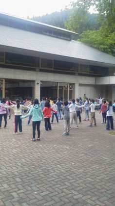 6:30からお祭り広場で朝会です。昨日は早く寝た子が多かったようで、皆元気です。