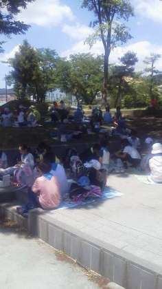 川場村歴史民俗資料館前で、昼食を食べました。しっかり食べている子が多かったです。デザートにアップルパイを食べました。もうすぐ帰りますので、お土産話をお楽しみに。