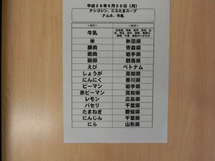 6月20日(月)の給食食材産地について