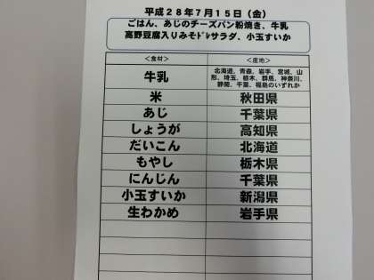 7月15日(金)の給食食材産地について