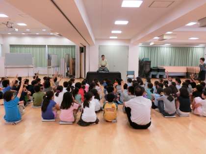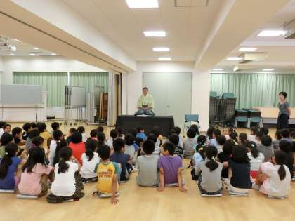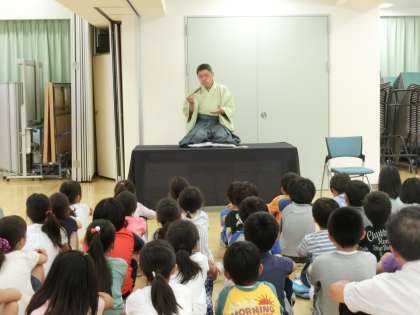 6月27日(月)学校公開期間の2日目。4年生は国語の学習の一環として「落語」を聞きました。噺家さんを学校にお招きし、「うしほめ」を楽しみました。手拭いと扇子の2つだけで、本を読んだり、そばを食べたりするなども教わりました。今回の学習から子どもたちは「じゅげむ」に挑戦しました。