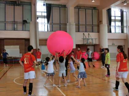 7月2日(土)、授業日ではありませんでしたが、体育館でニュースポーツの「キンボール」体験をしました。1年生から6年生までの子どもたちの他に、保護者の方も参加してくださいました。本校では3回目の開催となり、今回も世田谷区スポーツ振興財団のご協力をいただきました。また、プロ選手にもお越しいただき、本物の迫力あるゲームの様子も披露していただきました。大きなボールに子どもたちは大喜びでした。