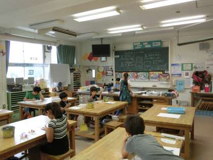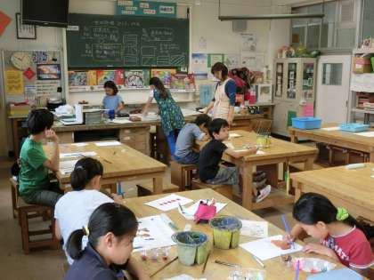 夏休みに入りました。7月21日(木)と22日(金)は、世田谷線内のポスター作りが図工室でありました。昨年度に引き続き、「山下秋の味覚まつり」をテーマに思い思いの秋を絵にしてポスターに仕上げていきました。21日でほぼ色塗りが終わり、22日で完成しました。印刷されたものが手元に届くのが楽しみです。