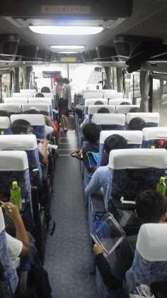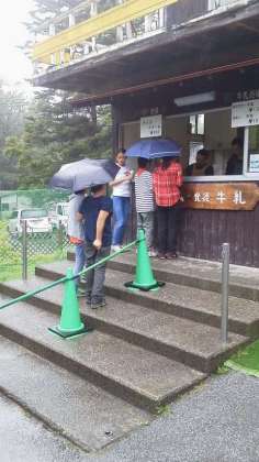 13:07〜26の間に光徳牧場に着きました。膝の痛みがある子は、ハイキングを回避しましたが、それ以外の子は、けがもなく7.4kmを完歩しました。写真は、バスの中の昼食、ソフトクリームで並んでいる様子です。