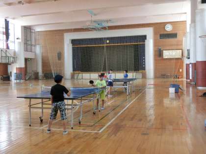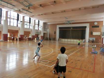 夏季水泳指導期間中は、体育館で遊び場開放を実施しています。保護者や地域の方が交代で、子どもたちの遊びを見守ってくださっています。時間は午前9時〜正午までです。水泳指導の前か後にたくさん利用してください。