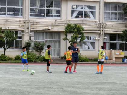8月1日(月)から松沢中学校での部活動体験が始まりました。初日は、午前の部にサッカー部と女子バレーボール部の体験がありました。サッカー部には、本校の5・6年生4名が参加しました。中学生に交じって一緒にゲームを楽しみました。