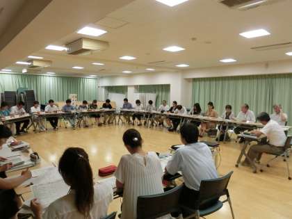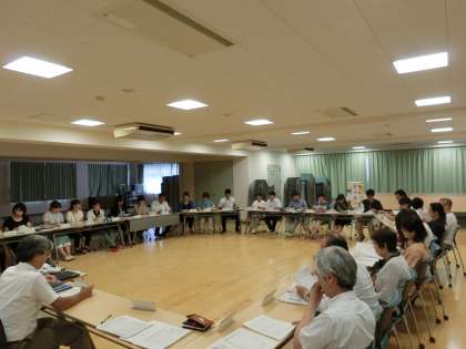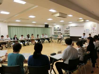 8月30日(火)の午後は職員会議でした。今回は、学校運営委員の方々が参加され、約2時間に渡る会議の様子を参観していただきました。前半は体罰に関する服務研修を、後半は各担当から提案される様子を参観し、「たくさんの提案があり驚きました。」「短い時間の中で理解していくのは大変だと思いました。」など感想をいただきました。