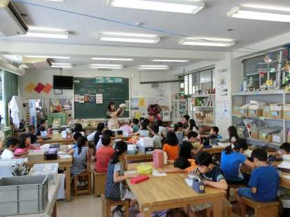 5日(月)、3年生の図画工作の授業がありました。2学期は、空き箱を使ってのケーキ作りからスタートです。題して「パテシエ パラダイス」。ケーキを2段重ねにするのか、チョコレートケーキなのかホワイトケーキなのかなど、考えるだけでも楽しそうでした。写真は、2組の様子です。