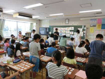 5日(月)、5年生は外国語活動の授業をしました。英語支援員の先生とともに「Do you like 〜?」について取り組みました。後半は、「I like 〜 」の表現をしながらビンゴゲームをしました。ビンゴになった人からその場に立っていきました。写真は1組の様子です。