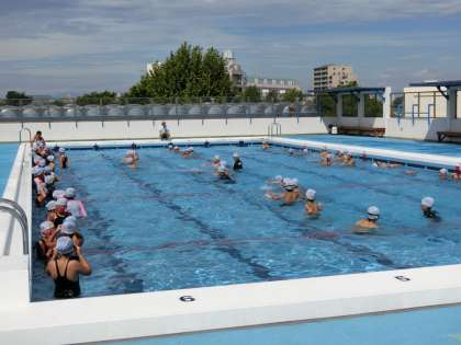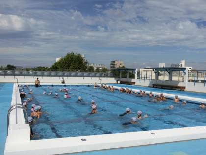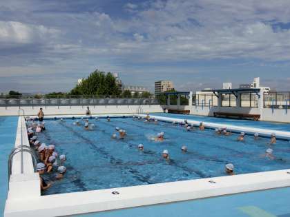 6日(火)の1・2時間目に3年生の水泳指導がありました。3年生は6日と8日の2回で水泳の授業が終わります。3年生も他の学年同様、水なれの後、検定をしました。写真は、水なれの様子です。プールサイドの気温は朝から32度もあり、水の中に喜んで入る元気な姿がありました。