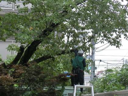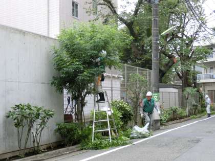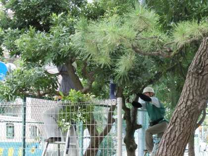 13日(火)、16日(金)の2回に渡って、学校の樹木の剪定が行われました。今年度も「緑友会」の皆様方にお世話になりました。高いところにものぼり、枝葉をどんどん落としていました。お陰様で、うっそうとした感じがなくなり、すっきりしました。緑友会の皆様に感謝申し上げます。