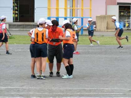6年生の体育は、リレーに取り組み始めました。リオ・オリンピックで男子400mリレーの活躍を知っている子どもたちは、授業を楽しみにしていたようです。13日(火)は、初めて「タブレット」を使い、友達のバトンパスの様子を記録しました。その場で見合いながら、どうしたらタイムを縮められるかを話し合っていました。写真は2組の様子です。