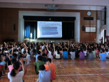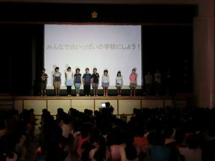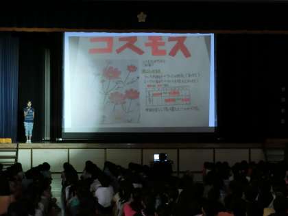 15日(木)の朝、体育館で「理科・栽培委員会」の発表がありました。現在、栽培している植物の紹介を中心に、途中、植物についてのクイズを取り入れながら、発表していました。西福寺通り沿いの花壇には、約30cmほどに伸びたコスモスがあります。花が咲くまでもう少しですが、みんなで見守っていきたいです。
