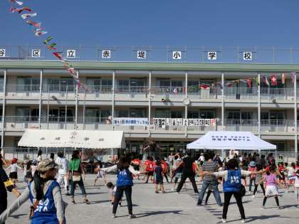 15日(土)の午後、校庭で「第41回健康フェスタ」が行われました。青空のもと、未就学の子どもたちから、小学生、保護者、地域の方々までが一緒になって、体を動かしました。写真は、準備運動、ゲーム「木の中のリス」、玉入れ大人編の様子です。実行委員の皆様方には、準備の段階から大変お世話になりました。感謝申し上げます。