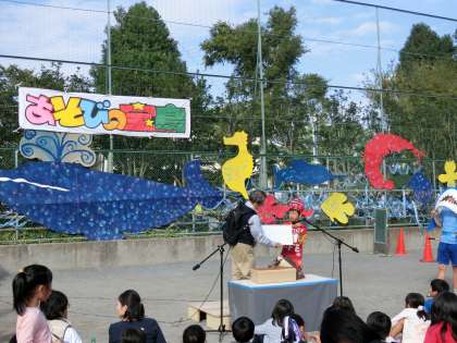 16日(日)の正午から、赤松公園にて「あそびの宝島」が開催されました。今年度のテーマは海。スタッフの皆さんは、海の生き物の被り物や海賊の衣装を身に着けて雰囲気を盛り上げていました。本校からは、1年生男子と2年生男子が「マジック」をお客さんの前で披露しました。保護者の方は、フェイスペインティングのコーナーを担当していただきました。ご協力いただいた皆さんに感謝申し上げます。