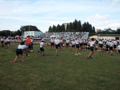 最後の競技は、長なわ跳びでした。今年度から、なわが軽くなったことと、芝生養生のため、3分間で何回跳べるかを競いました。本番は、自己新記録を出すことができませんでしたが、各クラスとも心を合わせてがんばっていました。