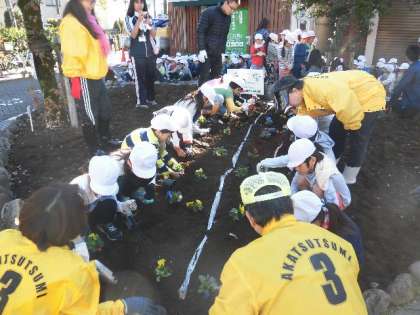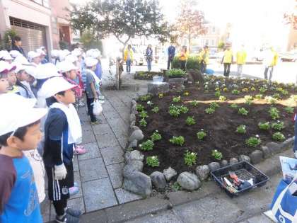 4日(金)、2年生が赤堤3丁目の花壇で行われる「秋の花植え」に参加しました。子どもたちにとって5月以来2回目の活動です。赤堤3丁目自治会、松沢まちづくりセンターの皆さんのご協力により、ノースポール、パンジー、チューリップの球根を植えました。