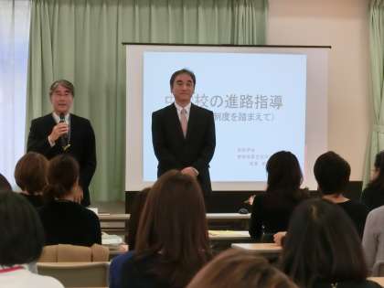 12月3日(土)、授業日ではありませんが、午前10時からPTA実行委員会を多目的室で行いました。今回は、赤松学舎の代表校長である松沢中学校の校長先生にお越しいただき、中学校の進路指導についてお話をしていただきました。参加した保護者の中にはメモを取りながら聴いている方もいました。お話の内容は、後日発行する「PTA実行委員会だより」でお伝えします。