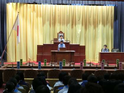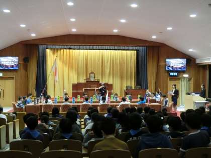 2つ目の見学先は、国会議事堂の参議院でした。委員会の審議中とのことで、階段や廊下等の移動も静かに行う姿がありました。今回は、参議院の特別体験プログラムに参加することができました。本校を含め3校の子どもたちの中から、議長、委員長、大臣、副大臣、委員等を事前に選出し、プログラムに沿って、審議したり、採決したりしました。国会の果たす役割については3学期に詳しく学習します。