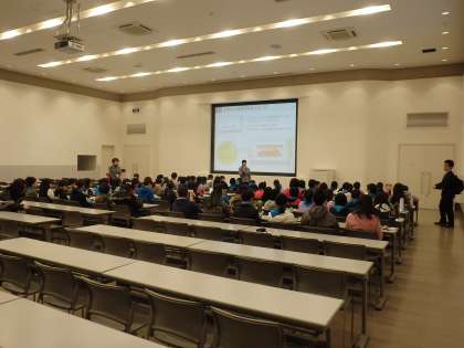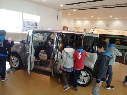 写真は、工場内は写真撮影ができないので、ゲストホール、ショールームでの子どもたちの様子です。