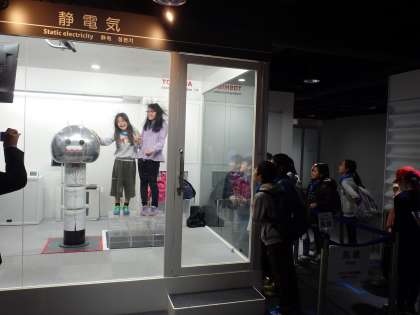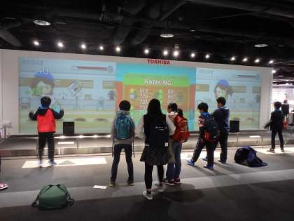 日産自動車追浜工場見学後、幸浦ICから首都高速に乗り大師ICで下り、東芝未来科学館へ行きました。東芝未来科学館は、JR川崎駅前にあり、家族でも気軽に行けるところにありました。到着後、Bホールで昼食をとり、すぐサイエンスショーを見せていただきました。その後、子どもたちはグループごとに見学し、エレクトリックとエレクトロニクスを中心とした最先端の技術を楽しみました。