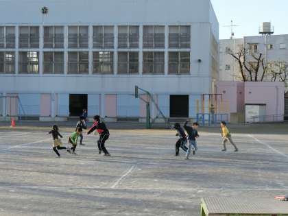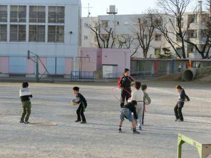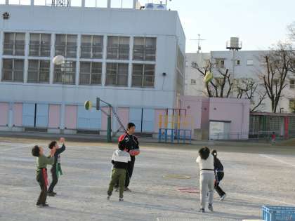 1月31日(火)から3年生が「タグラグビー」の朝練習を始めました。体育の授業で取り組み始めたことを受けての自主練習です。ラグビーボールに慣れるため、ボールを投げ上げたり、体の周りを回転させたりしています。ミニゲームでは、タグを取られないように、一生懸命走り回る姿がありました。