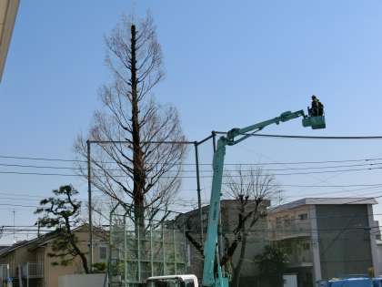 13日(月)から17日(金)まで、校庭の樹木を剪定しました。今回は特に「サクラ」の枝を落としました。校庭側ばかりに伸びてしまい、このままでは倒れる可能性もあることがわかったからです。木としてのバランスをとるために、だいぶ落としました。サクラ以外の高木も合わせて剪定しました。